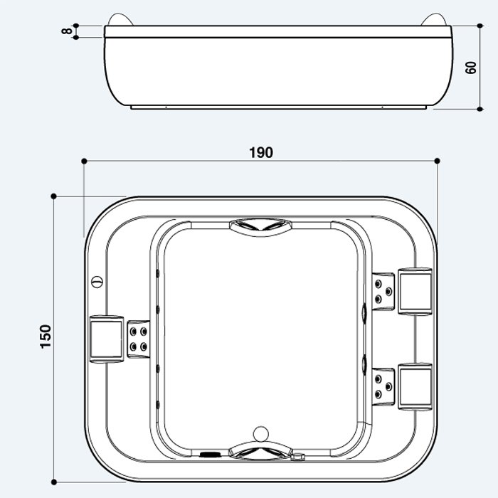 Aquasoul Double 190x...Aquasoul Double 190x90x57см Jacuzzi Ванна гидромассажная, без панелей, AQUASYSTEM