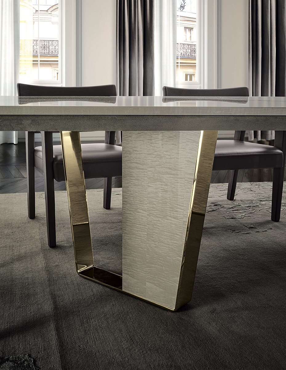 Keope - стол с профильной столешницей с секциями из разных материалов и 2 трапециевидными ножками со вставкой из кожи или дерева. Солидный и эффектный, он выпускается со столешницей, разделенной на 2 или 3 части. Коллекция Keope, включающая стол, консоль и тумбу, выражает непреходящую элегантность, вдохновленную динамизмом подлинного современного шика, в котором изысканные материалы, ценные разновидности мрамора и чистые формы пробуждают ощущения, полностью заключающие в себе проектный подход этого бренда.