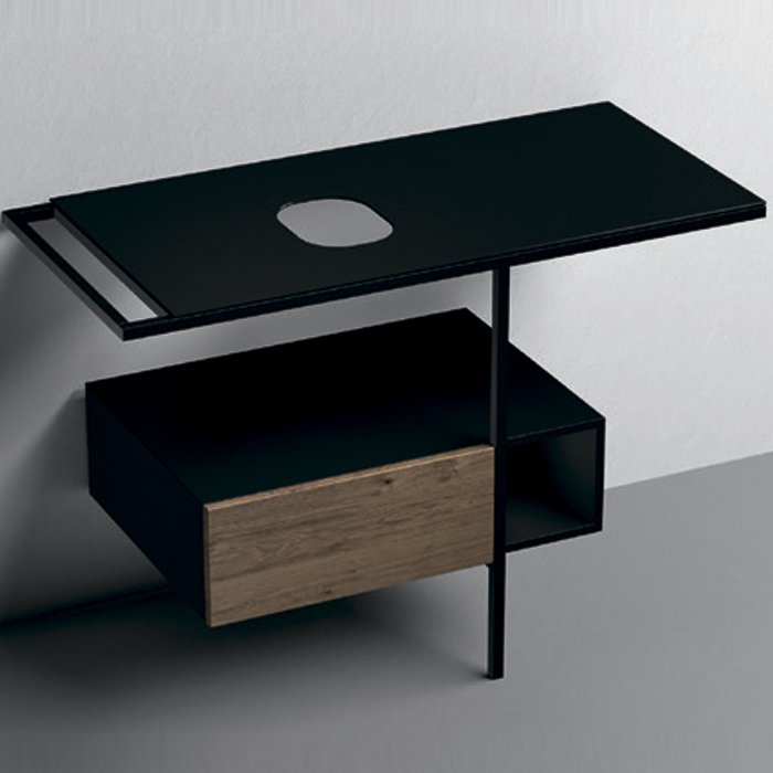 Kerasan Thelma Металлическая структура для раковины 108х74см, напольная, с полкой, ящиком, с 1 отв., полотенцедержателем, цвет: черный матовый