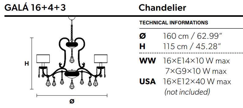 Люстра Masiero Gala 16+4+3 V97, цвет: серебро