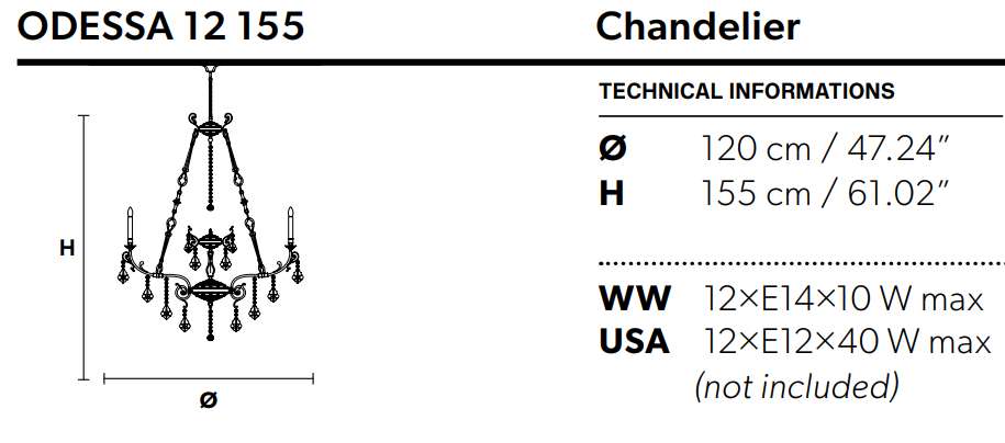 Люстра Masiero Odessa 12 155 G20 CUT CRYSTAL, цвет: состаренное золото