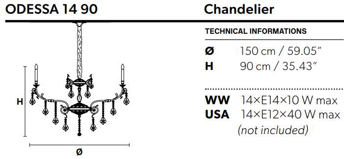 Люстра Masiero ODESSA 14 90 G20 CUT CRYSTAL, цвет: состаренное золото