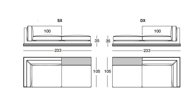 MASON 233х105 см LONGHI Элемент дивана со вспомогательной поверхностью (SX/DX) (каркас с основанием из металла)