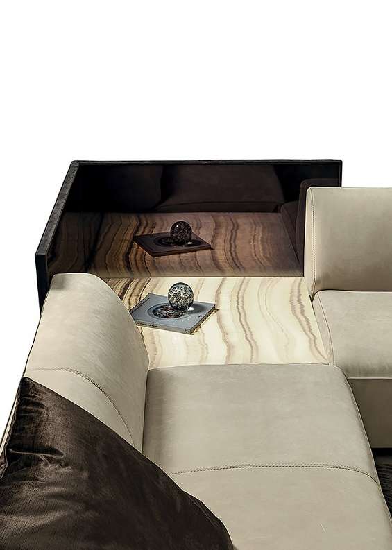 - Угловой столик 104х104 см, столешница оникс цвета слоновой кости с подсветкой