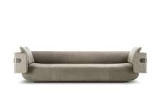 Диван MI, в наружном каркасе которого с тщательно выполненным профилем, расположена поверхность сиденья, открывающаяся венчиком, как пергамент, точно в соответствии с задумкой дизайнера. Изысканный эстетический язык мебели в коллекции MI, находящий выражение в мягких формах, сдержанных пропорциях и эффектных деталях, как, например, окружающая каркас металлическая полоса.
