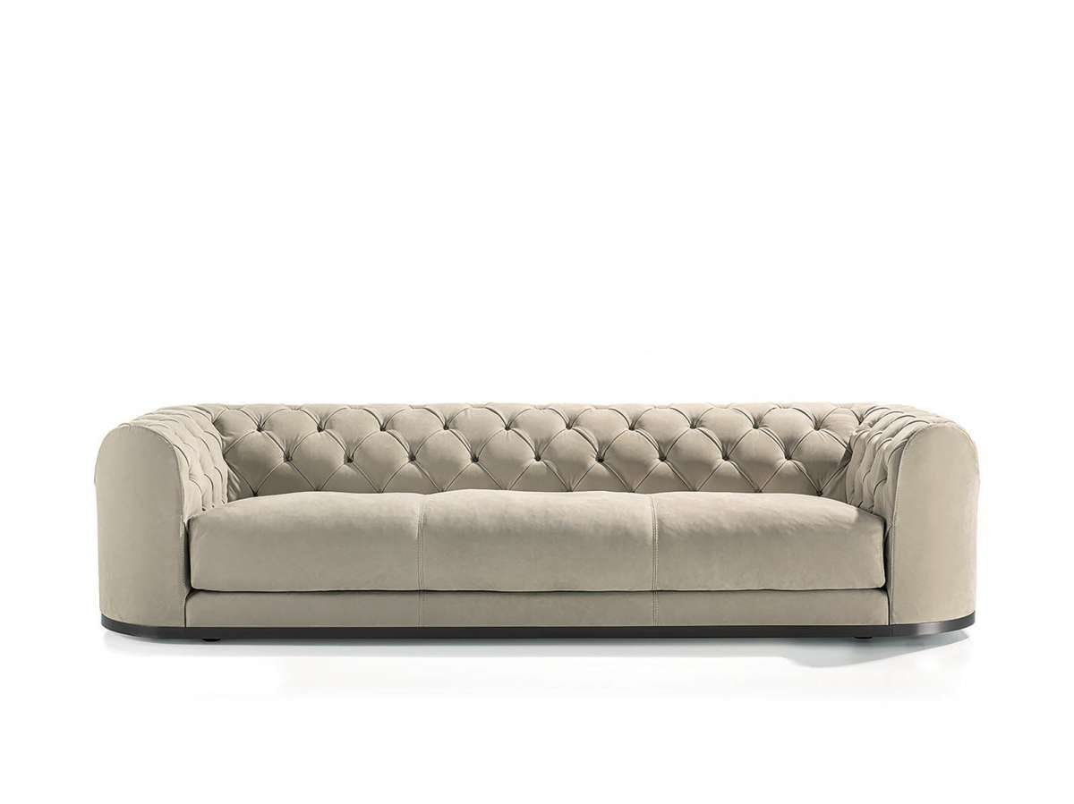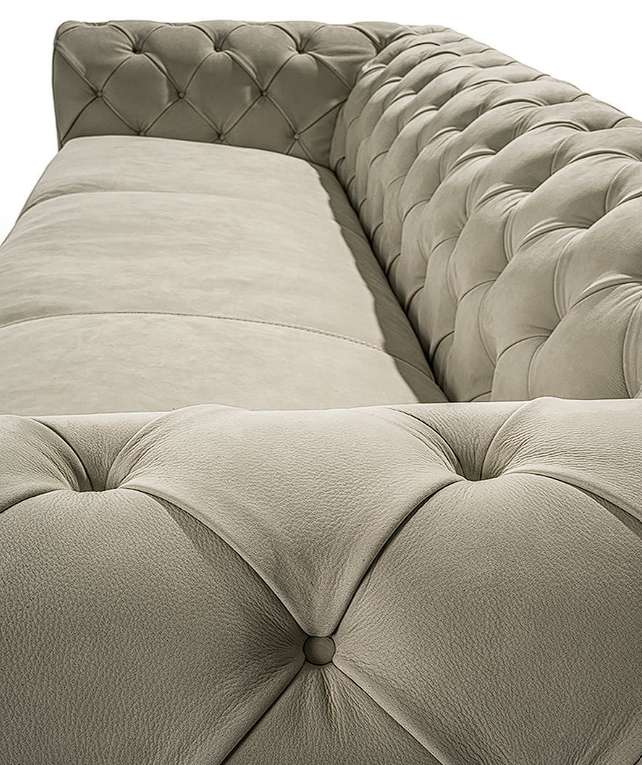 Диван Milton, характеризующийся густой простежкой капитоне спинки в сочетании с гладким цельным сиденьем, уже с первого взгляда заявляет о своей способности привлекать внимание и играть роль уникального изделия, обладающего яркой индивидуальностью. Его привлекательность связана с элегантной простежкой и дизайном, отличающимся округлыми и мягкими линиями, что делает его одновременно актуальным, традиционным и необычным.
