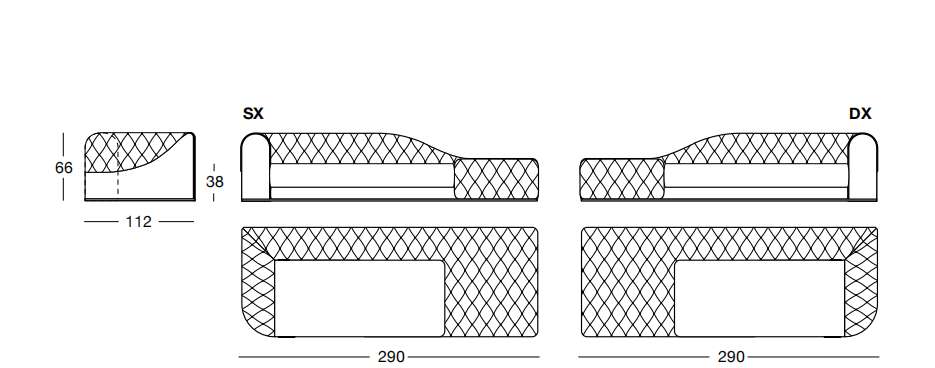 MILTON 290х112 см LONGHI Диван с подлокотником (SX/DX)