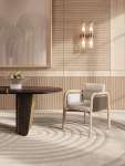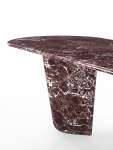 Отличительной чертой дизайна Giorgio Bonaguro является поиск новых материалов и смешение различных видов искусства для создания стиля, отличающегося простотой и элегантностью линий. Обеденный стол Monroy воплощает в себе тягу дизайнера к изящным формам. Ножки стола имеют форму двух противоположно расположенных перевернутых парусов и отличаются геометрически чистыми линиями. Столешница и ножки изготовлены из мрамора, а ножки создают визуальный и материальный контраст: на внешней стороне мраморной ножки расположена металлическая пластина, создающая эффектный контраст цвета и фактуры.