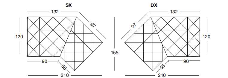 MUST 210х155 см LONGHI Полуугол 45° с подлокотником 120 см (SX/DX)