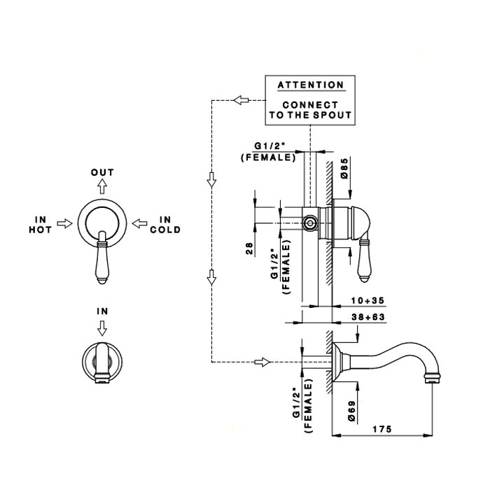 Ceadesign CROSS Наст...Ceadesign CROSS Настенный смеситель с двумя ручками и изливом L. 220 мм, 3 отверстия, цвет на выбор
