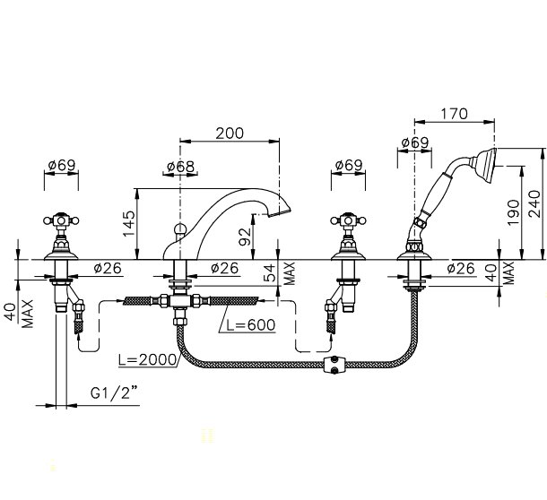 Nicolazzi Half Dome Смеситель для ванны на 4 отверстия, излив: 160мм и ручным душем, цвет: тёмная бронза