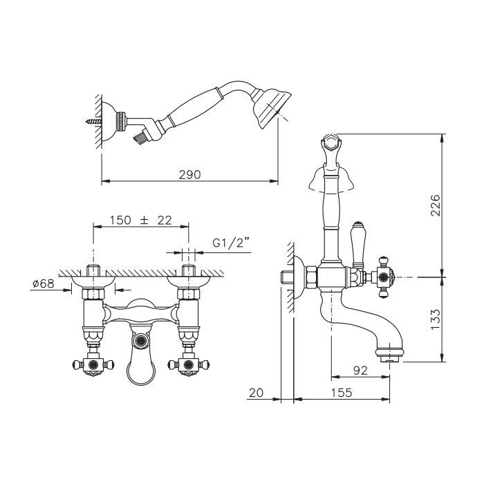 Nicolazzi Le Pietre Смеситель для ванны с 2мя ручками, с переключателем ванна/душ, + комплект руч. душа, цвет: хром