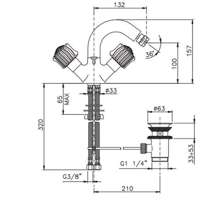 Nicolazzi Nuova Bren...Nicolazzi Nuova Brenta Смеситель для биде с 2мя ручками, поворотный излив: 132мм, с донным клапаном, цвет: хром