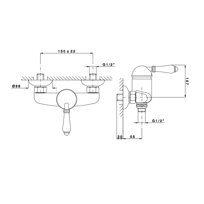 Petit Mont Blanc Nicolazzi P.m. Blanc Смеситель для душа однорычажный, вывод снизу 1/2", ручки белая керамика, цвет: хром