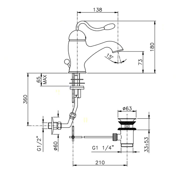 Nicolazzi Signal Смеситель для раковины, с донным клапаном, на 1 отверствие, излив: 138 мм, цвет: хром