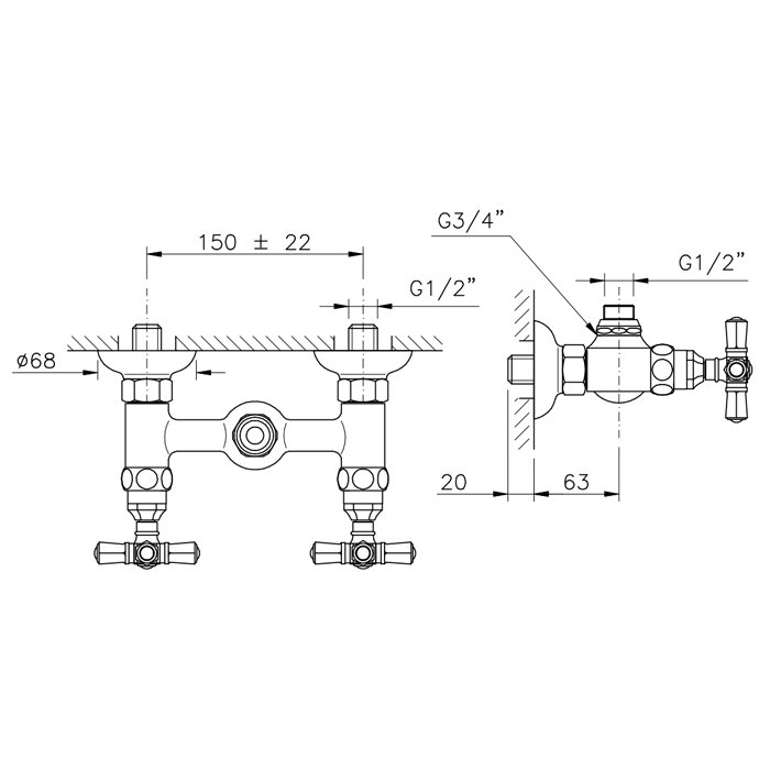 Nicolazzi Dames Angl...Nicolazzi Dames Anglaises Смеситель для душа на 2 отверстия, вывод сверху 1/2" (без шланга и лейки), цвет: тёмная бронза