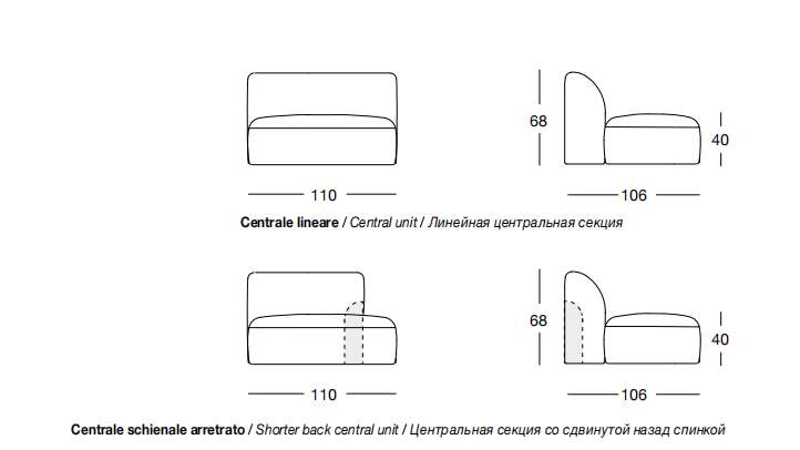 NIP 110х106 см LONGHI Центральная секция дивана со сдвинутой назад спинкой