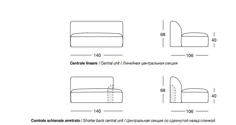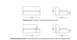 NIP 140х106 см LONGHI Центральная секция дивана со сдвинутой назад спинкой