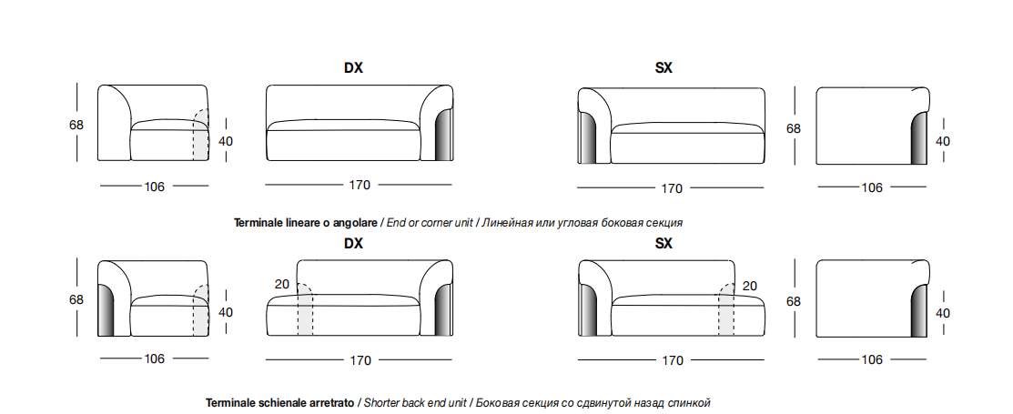 NIP 170х106 см LONGHI Линейная боковая секция (SX/DX)