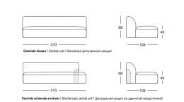 NIP 210х106 см LONGHI Центральная секция дивана со сдвинутой назад спинкой