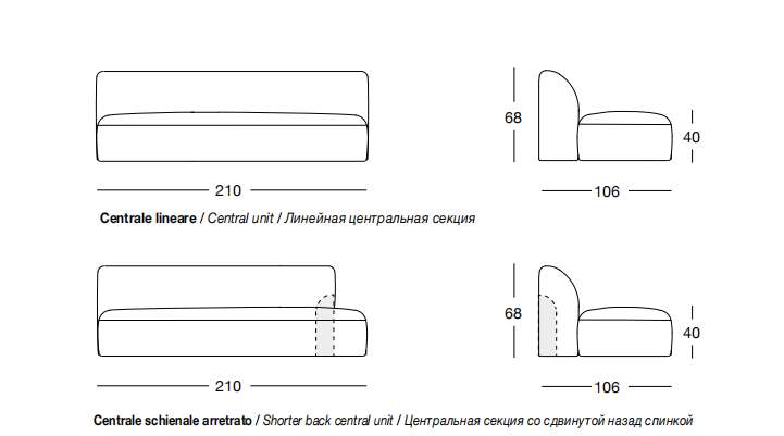 APPIANI 109х208 см V...APPIANI 109х208 см Vittoria Frigerio Центральный элемент дивана, 3 посадочных места (левый/правый)