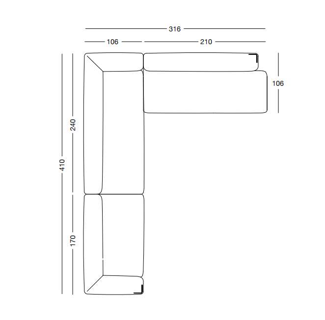 - Центральная секция со сдвинутой назад спинкой 210х106 см