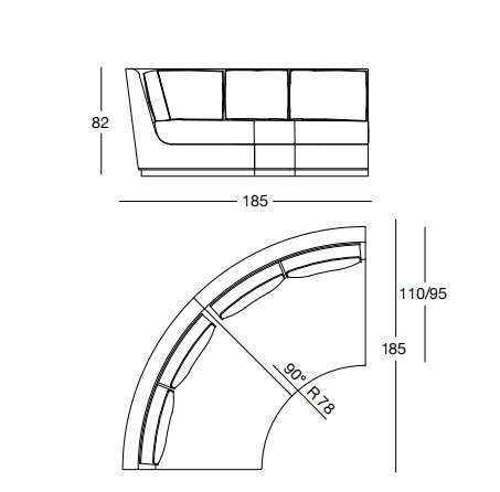 NOBU 185х110/95 см LONGHI Полукруглый угловой элемент