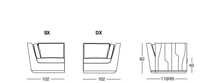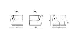 NOBU 102х110/95 см LONGHI Боковая секция с высоким или низким подлокотником (SX/DX)