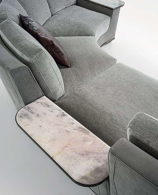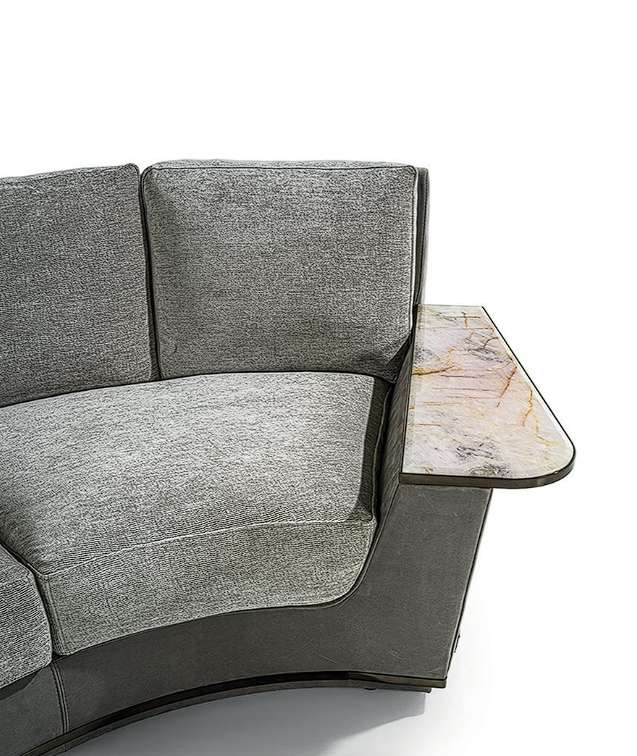 - Полуугловая секция с подлокотником из мрамора из розового кварца