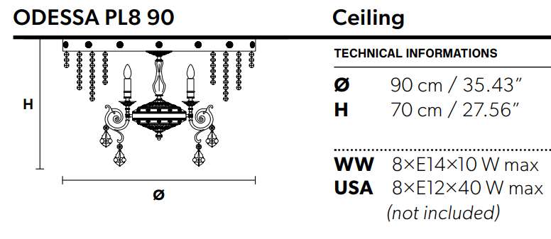Потолочный светильник Masiero Odessa PL8 90 G20 CUT CRYSTAL, цвет: состаренное золото