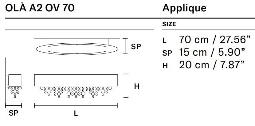 Бра Masiero Ola A2 OV 70 G01 COLORED GLASS, встроенная подсветка, цвет: бронза