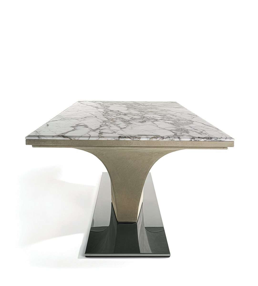 Стол Omotesando отличается изящной солидной рамой с кожаной обивкой и тонким прямоугольным основанием из металла, опирающимся на пол. Стол обладает яркой индивидуальностью и может придать стильный и элегантный характер любому помещению, гармонично сочетаясь со всеми стульями коллекции Longhi.