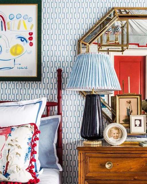 Alexa Hampton Penelope (керамика, состаренная латунь, абажур из перкаля)