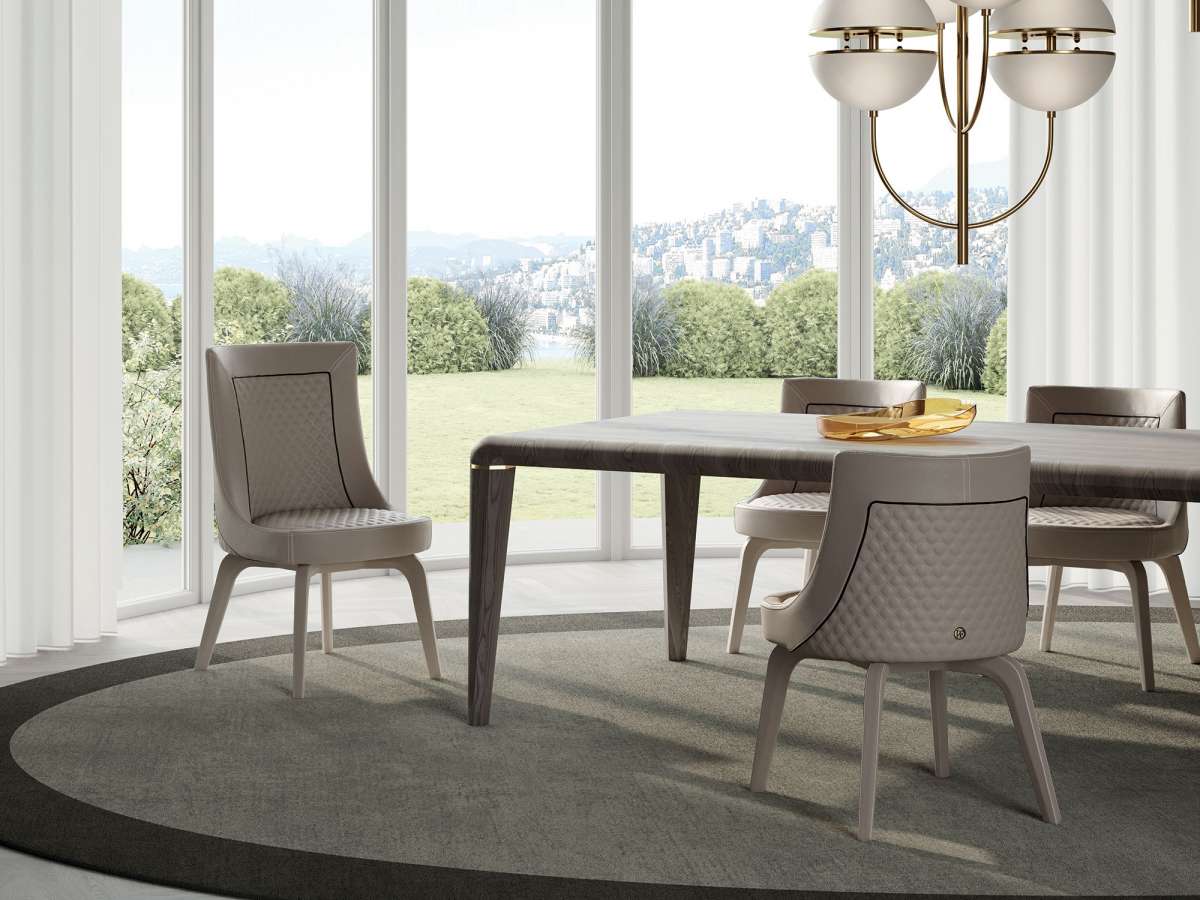 Вращающийся стул Perla – шедевр мастерства и технологий. Сиденье стула установлено на прочном деревянном основании с поворотным механизмом, который автоматически возвращает его в исходное положение. Сиденье обито тканью или кожей и имеет простеганную конструкцию в трёх зонах: внутренней и внешней спинке, а также верхней части сиденья. Perla – интересный и удобный стул, доступный с двумя вариантами высоты спинки (низкой и высокой), что позволяет максимально персонализировать интерьер.