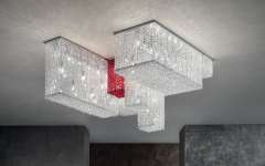 Потолочный светильник Masiero CUBO PL/LONG/Q HALF CUT GLASS, подвески прозрачные, цвет: хром