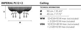 Потолочный светильник Masiero Imperial PL12+2 G04 CUT CRYSTAL, цвет: хром