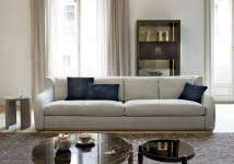 Коллекция Rey включает в себя диваны, разделительные элементы и пуфы различных размеров, основанные на общей идее дизайна, которая преобразует неопределенный вкус прошлого в абсолютно современный стиль. Линейный и модульный диван без ножек с основанием из металла. Мягкая спинка, постепенно опускаясь на боковинах, превращается в подлокотник и обрамляет мягкие подушки сиденья из гусиного пуха. Веерообразный угловой элемент позволяет создавать криволинейную конфигурацию, которая подходит для оформления небольших помещений.