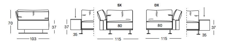 ANSEL 235х100 см LON...ANSEL 235х100 см LONGHI Боковая секция дивана (SX/DX)
