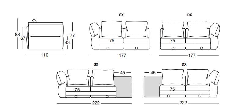 RIVERSIDE 177х110 см LONGHI Боковая секция (SX/DX)