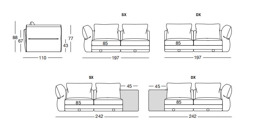 RIVERSIDE 197х110 см LONGHI Боковая секция (SX/DX)