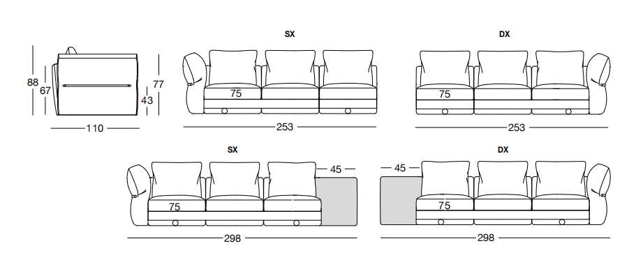 RIVERSIDE 253х110 см LONGHI Боковая секция (SX/DX)