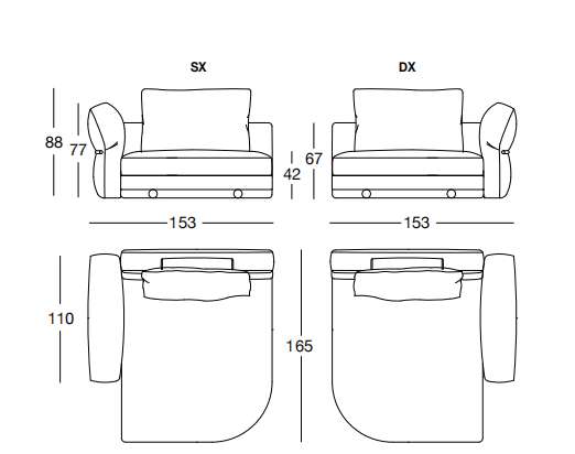 RIVERSIDE 165х153 см LONGHI Шезлонг (SX/DX)
