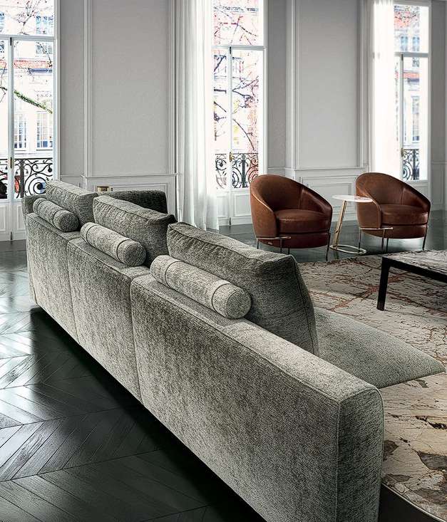 Диван Riverside, разработанный Giuseppe Iasparra, имеет неструктурированную форму и низкие, не слишком глубокие пропорции, которые приглашают Вас к более удобному и неформальному расположению, в том числе благодаря широким подушкам из гусиного пуха. Аксессуары и столики обеспечивают дивану уникальную функциональность. Riverside идеально гармонирует с любой обстановкой благодаря элегантности и простоте линий. Металлическая вставка, обрамляющая подлокотник, придает изделию сдержанную элегантность. Обладая высоким потенциалом комплектования, универсальностью и новаторским дизайном, диван демонстрирует оригинальные и неожиданные конструктивные детали и композиционные элементы в динамичном и современном ключе. Версия Riverside с более длинной спинкой с боковой стороны сиденья позволяет комплектацию столиками, создавая композиционное разнообразие.