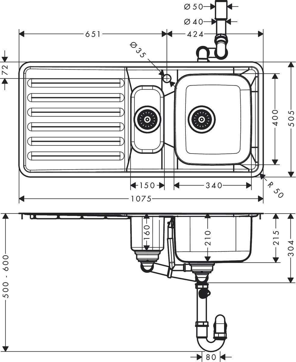 NOseries Hansgrohe S4111-F540 Встраиваемая мойка 340/150/400 с крылом, нержавеющая сталь