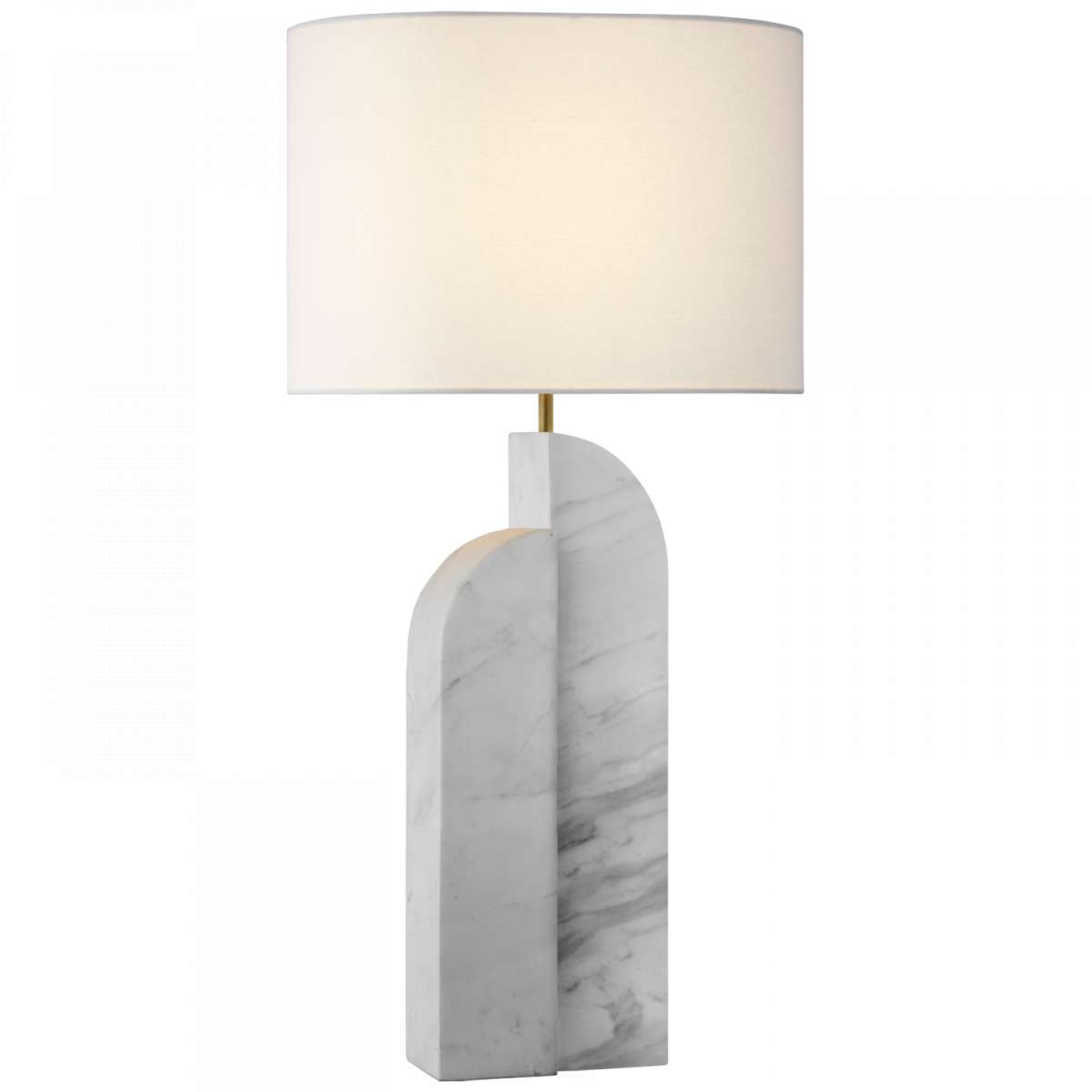 Kelly Wearstler Savoye (белый мрамор, льняной абажур)