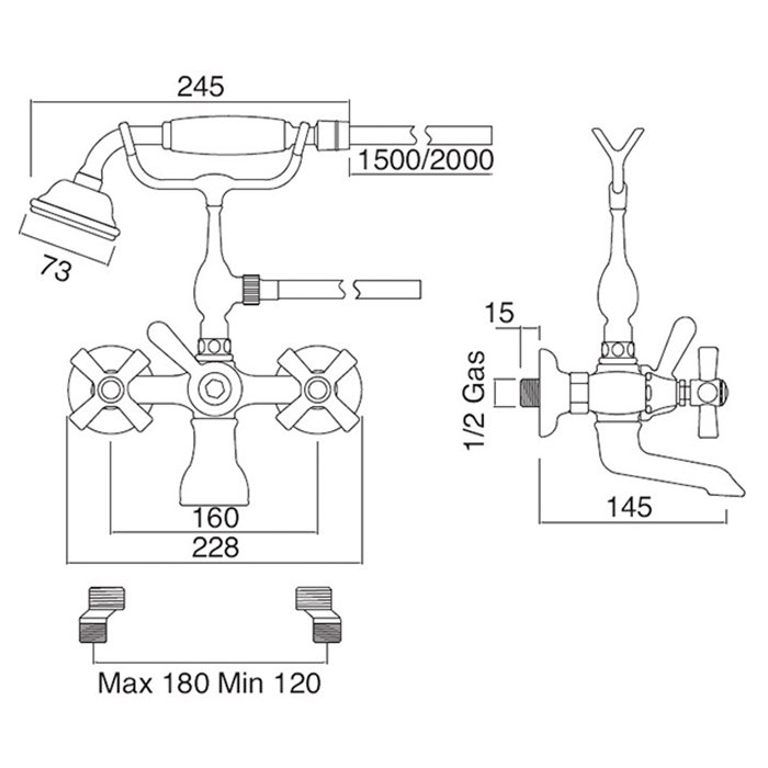 Nicolazzi Cristallo ...Nicolazzi Cristallo Liberty Смеситель для ванны однорычажный, встраиваемый, с изливом 160мм и ручным душем, цвет: хром