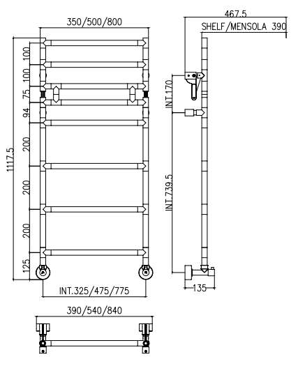 Sereno Водяной Полотенцесушитель 1117x500 Margaroli, цвет: Хром