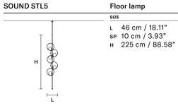 Торшер подвесной Masiero Sound STL5 G18+V90, встроенная подсветка, цвет: латунь/черный