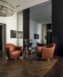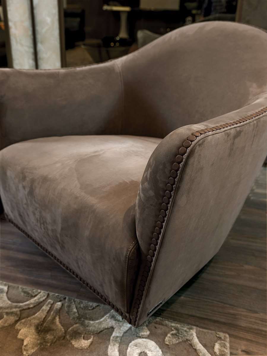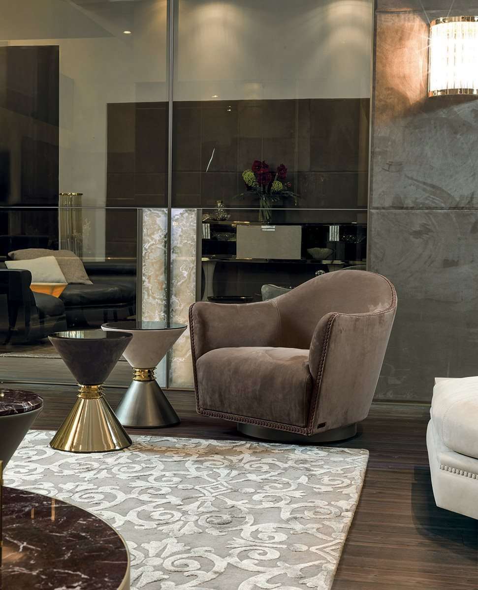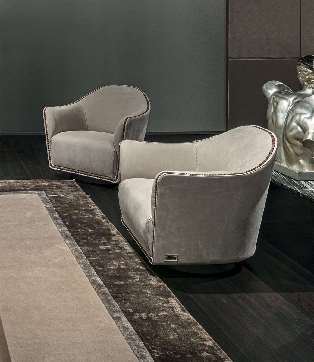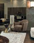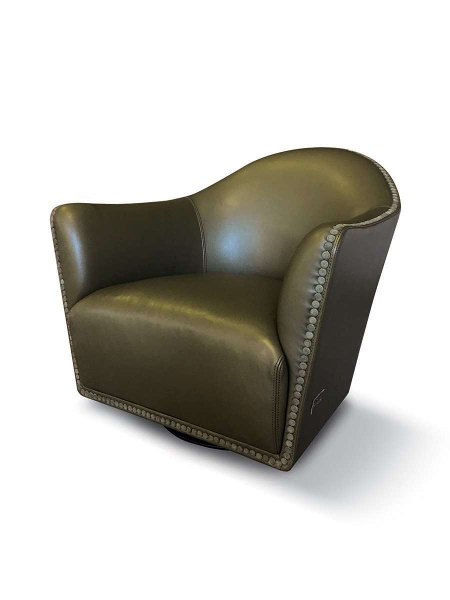 Круглое, изогнутое, компактное и элегантное кресло на вращающемся основании. Отличительной особенностью Vivienne является профиль, декорированный обтянутыми кожей пуговицами, которые, обрамляют периметр и подчеркивают его рисунок.