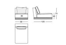 WELLES 80х125 см LONGHI Центральная секция дивана с двойной глубиной